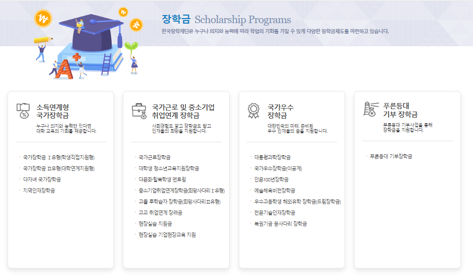 소득연계형 국가장학금에는 총 5가지 종류가 있다.
